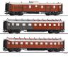 Reisezugwagenset „Preußischer Schnellzug“ der K.P.E.V., bestehend aus einem Packwagen, einem 2./3. Klasse Personenwagen und einem 3. Klasse Personenwagen, Teil 1