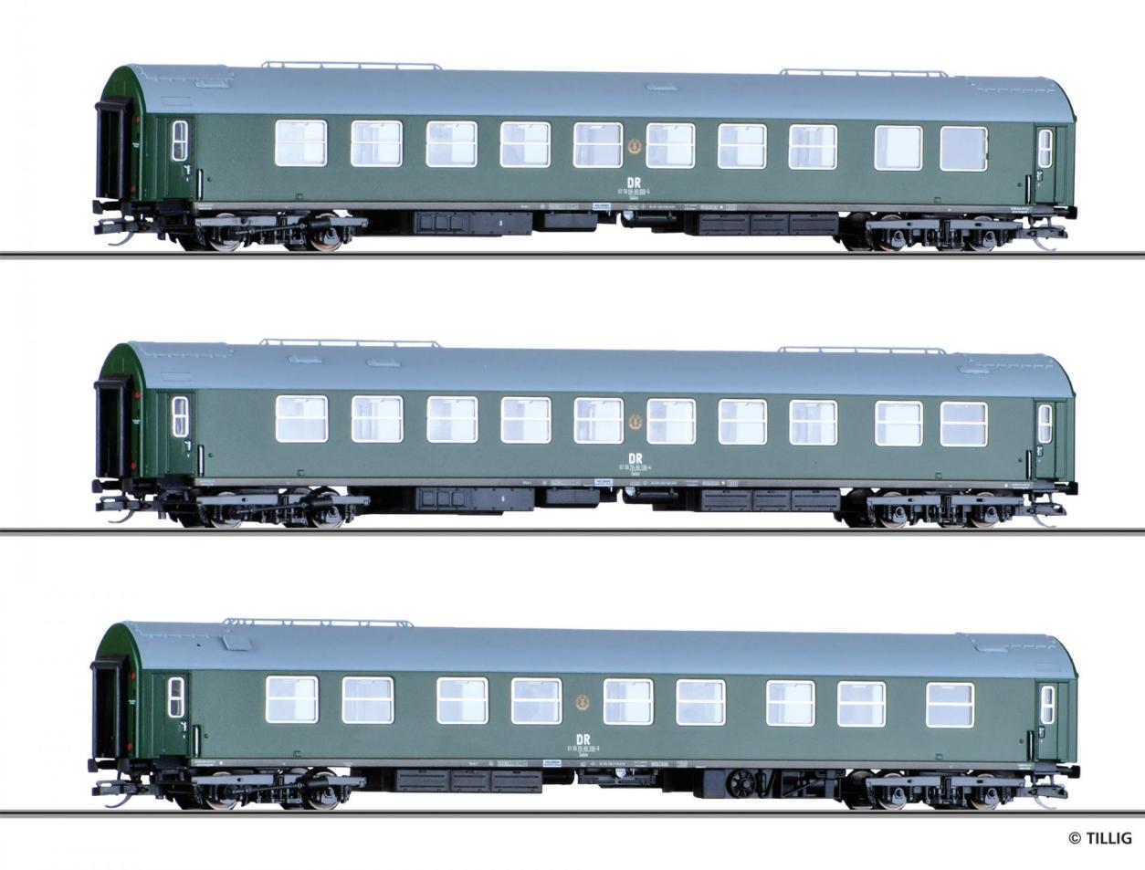 TT Reisezugwagenset Salonwagenzug 2 der DR, bestehend aus Salonwagen A, Beiwagen zu Salonwagen A und Salon-Schlafwagen, Ep. IV -FORMNEUHEIT-