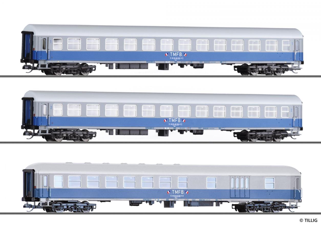 TT Reisezugwagenset Train Militaire Francais de Berlin 2 , bestehend aus drei Reisezugwagen, Ep. IV - Ergänzung zu 01025, 01050 - Einmalauflage 2021 Neuheit 2021 mit Inneneinrichtung ausgesta...