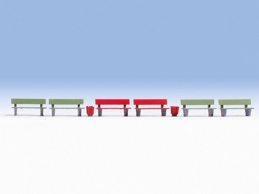Bänke 6 Stück + 3 Papierkörbe geeignet für Spur: TT Hersteller: Noch 46848
