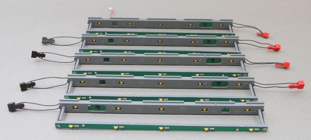 Für die Ausstattung des Gliederzuges DGBe mit warmweißer Innenbeleuchtung bieten wir einen Nachrüstsatz an.Der Nachrüstsatz besteht aus 5 Beleuchtungsbaugruppen, wovon eine mit einem Steckverbinder ausgestattet ist. Die Baugruppen sind untereinander mit Magnetkupplungen verbunden.