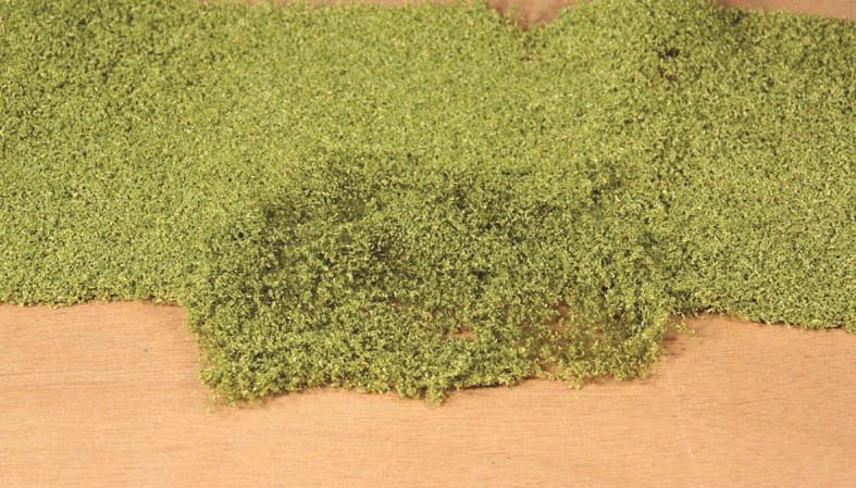 Blätterflor in 2x2 cm große Stücke zerrupfen und leicht dehnen. Die Stücken mit Super Beflockungsleim Heki 1595 auf dem Baumrohling fixieren. Die abstehenden flächen mit einer Schere abschneiden und man erhält superrealistische Modellbäume.