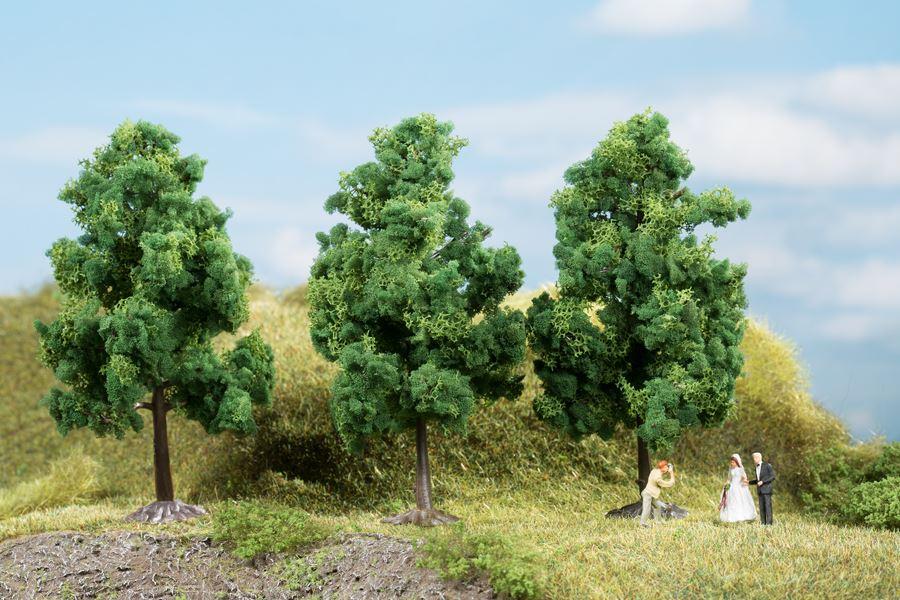 Mit unserem neuen Laubbaumsortiment in zwei Grüntönen und drei Größen können Sie eine sehr realistische Landschaft darstellen. Die Kunststoffäste sind jeweils mit zwei unterschiedlichen Schaumstoffen<br>beflockt, was entscheidend zur Vorbildnähe beiträgt.<br>3 Stück Hersteller: Auhagen