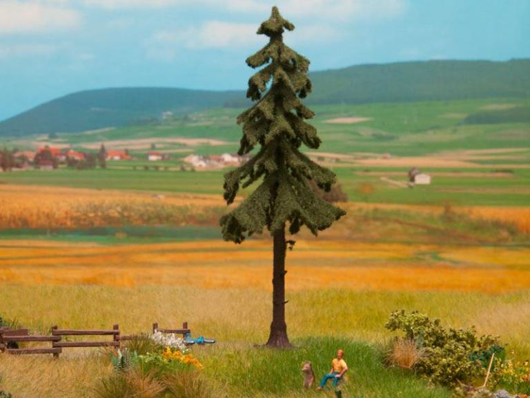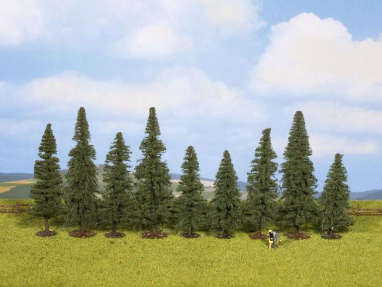 Fichten, 2 Stück, 11 cm und 12,5 cm hoch Spur: H0,TT,N Die Fichten unterscheiden sich von ihren "Kollegen", den Nordmanntannen, vor allem durch das hellere Nadelkleid. Das Bild zeigt, dass diese ...