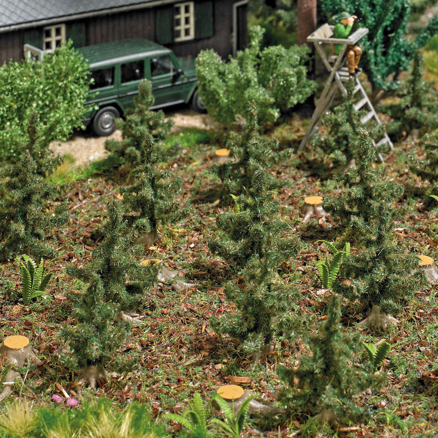 Packungsinhalt: Sortiment für eine Aufforstung (15 junge Fichten, 20 - 25 mm hoch). Inklusive 10 Baumwurzeln. Das Set kann auch ideal mit dem Fichten-Wald H0 6391 kombiniert werden. <br><br>Platzbedarf: 170 x 170 mm (variabel).
