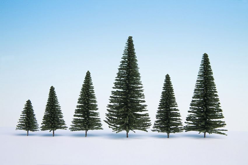 Tannen wie im Schwarzwald! Die preiswerten Hobby-Bäume von NOCH sind ideal, um auf Ihrer Anlage richtig aufzuforsten. Die Modelltannen sind die perfekte Lösung, um für wenig Geld für dichte Wälder und natürlich wirkende Baumgruppen zu erschaffen. Die Bäume sind in verschiedenen Höhen verfügbar. Je nach dem wie viele Bäume Sie benötigen gibt es die Modellbäume in den Verpackungsgrößen 50, 25, 10 oder auch nur 5 Stück.