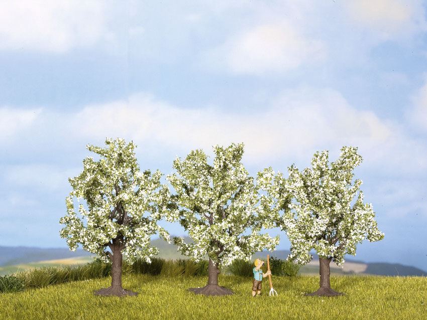 Obstbäume, weiß blühend, 3 Stück, 4,5 cm hoch