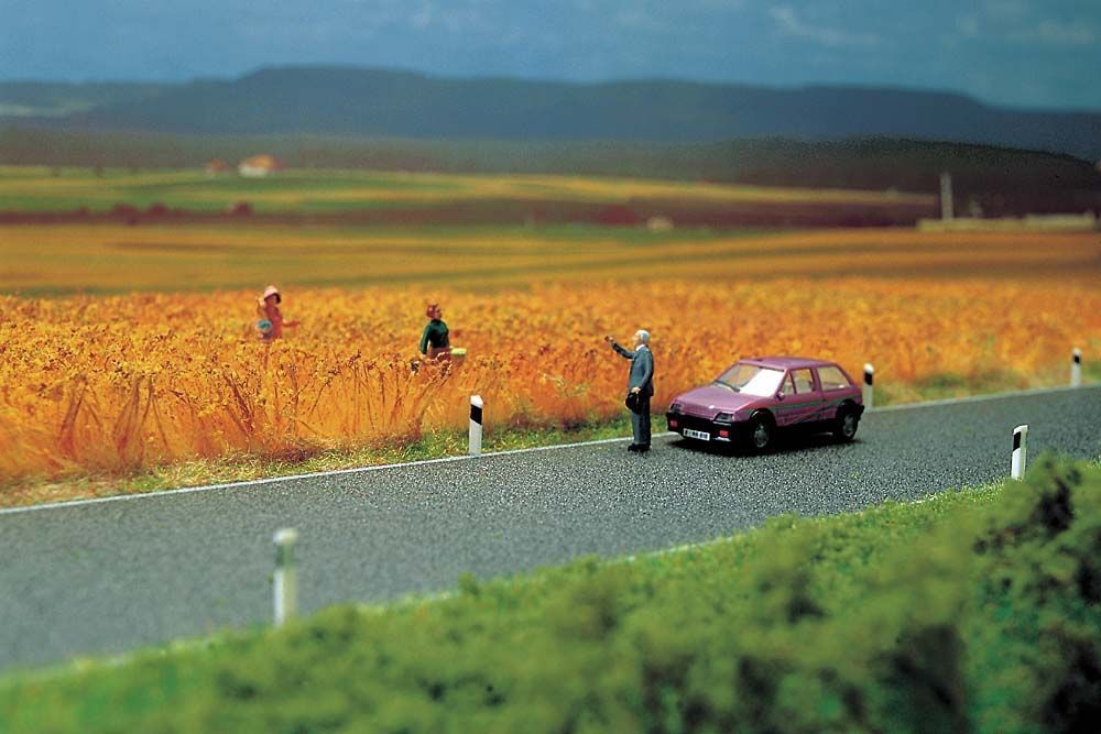 Die 66 mm breiten Landstraßen sind für H0 (schmale Landstraße) und TT (normale Landstraße) geeignet. Die Landstraßen haben Asphaltstruktur. Busch Straßenbänder sind selbstklebend, flexibel und nur 0,6 mm dünn.
